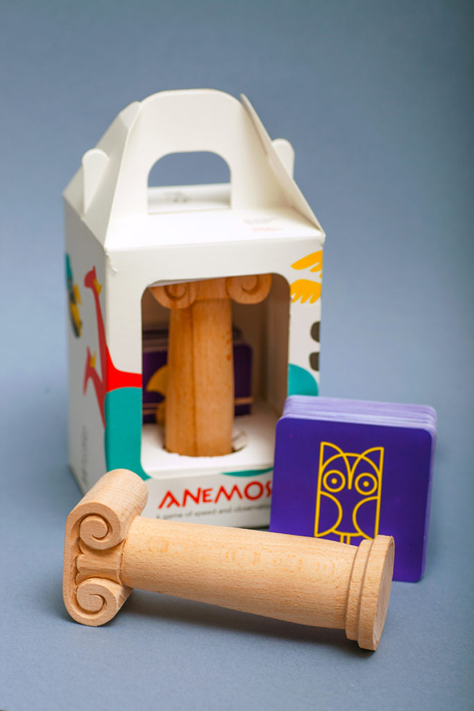 Το ‘Παιχνίδι ΑΝΕΜΟΣ’ είναι ένα παιχνίδι με κάρτες που δοκιμάζει την ταχύτητά σου και τις οπτικές σου ικανότητες. Οι 84 ανθεκτικές κάρτες έχουν ζωντανά χρώματα και μινιμαλιστικό σχεδιασμό αρχαίων ελληνικών συμβόλων και θα κάνουν ακόμα πιο ενδιαφέρον το παιχνίδι με τους φίλους και την οικογένεια.