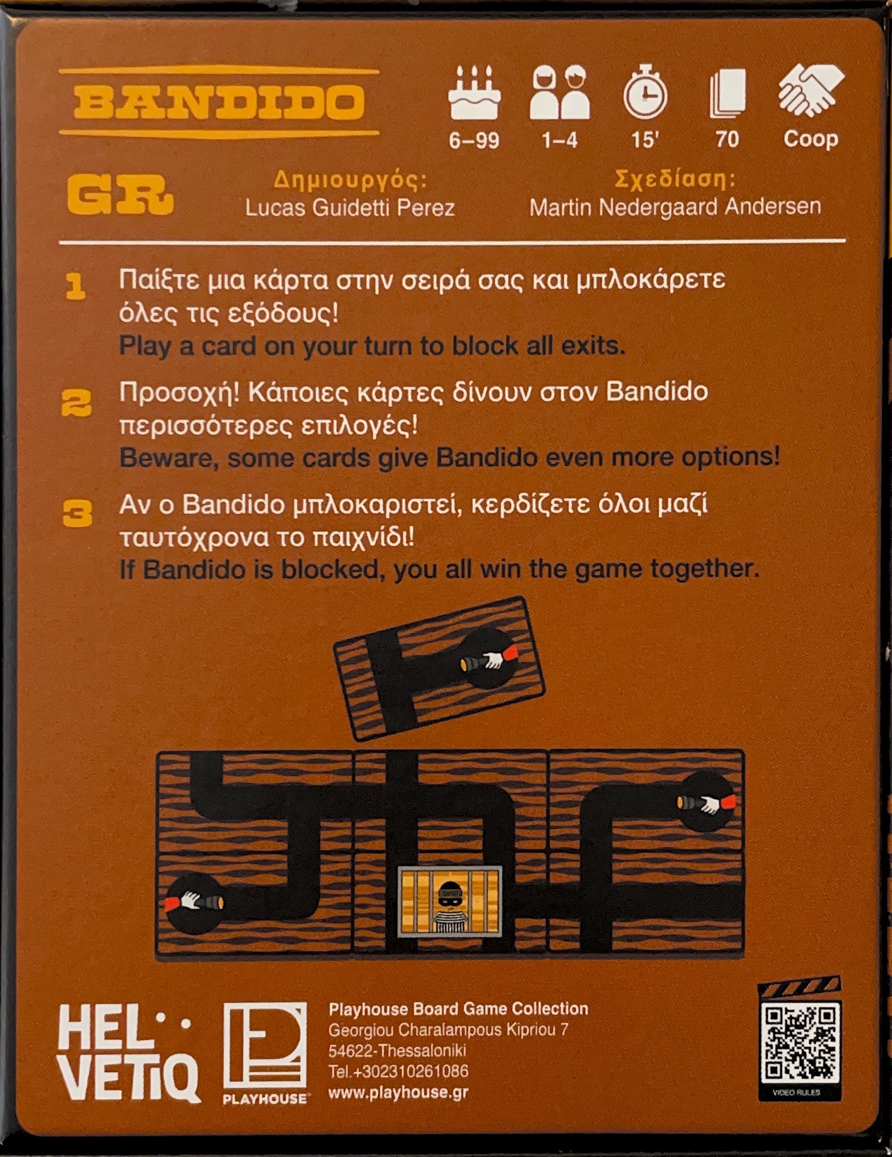 Ένας κρατούμενος υψίστης ασφαλείας προσπαθεί να δραπετεύσει μέσα από σήραγγες που ξεκινούν κάτω από το κελί του. Θα μπορέσετε να ενώσετε δυνάμεις και χαρτιά για να τον σταματήσετε; Το Bandido είναι ένα συνεργατικό παιχνίδι στρατηγικής και παρατήρησης για όλη την οικογένεια.