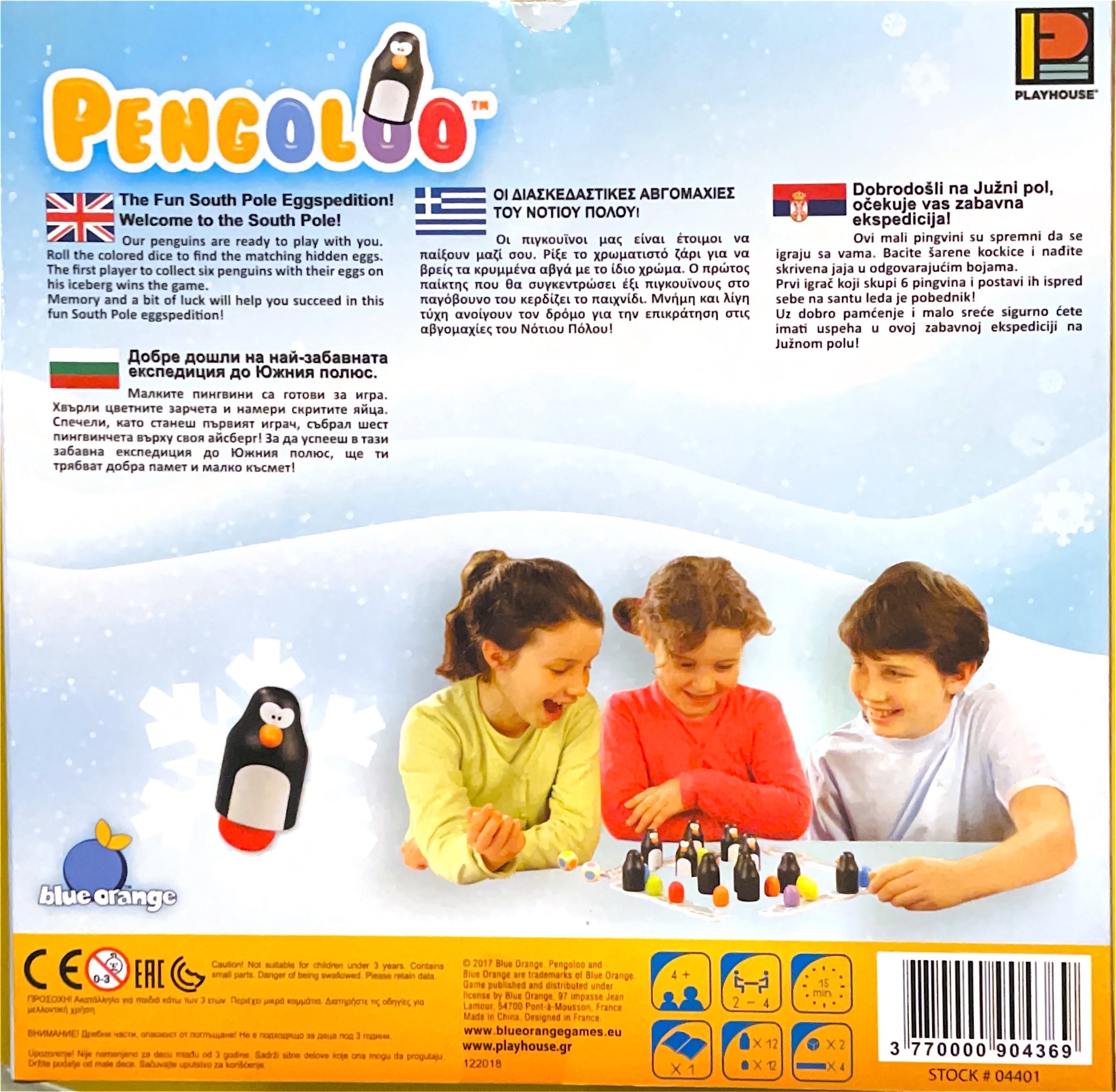 Καλωσήρθατε στον Νότιο Πόλο! Οι πιγκουίνοι μας ανυπομονούν να παίξετε. Ρίξτε τα χρωματιστά ζάρια και βρείτε τα κρυμμένα αβγά. Κερδίστε πρώτος απ’ όλους έξι πιγκουίνους και βγείτε νικητής. Με καλή μνήμη και λίγη τύχη θα γίνετε ο καλύτερος εξερευνητής που γνώρισε ποτέ ο Νότιος Πόλος!