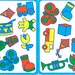 Ένα παιχνίδι αναγνώρισης προτύπων. Υπάρχουν 15 μεγάλες, ανθεκτικές κάρτες που απεικονίζουν μια σειρά από διάφορα αντικείμενα, όπως χαρταετούς, μπάλες, μολύβια, ψάρια κ.λπ. Κάθε κάρτα δείχνει τα ίδια 15 αντικείμενα, αλλά τα αντικείμενα έχουν όλα διαφορετικά χρώματα και βρίσκονται σε διαφορετικές τοποθεσίες. Οποιαδήποτε δύο φύλλα έχουν πάντα ένα και μόνο αντικείμενο που είναι πανομοιότυπο. Γίνε ο πρώτος που θα βρει αυτό το αντικείμενο!