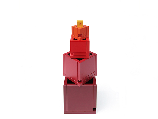 Στον κύβο του κύβου του κύβου... Η μικρότερη μονάδα μέσα σε ένα κελί, ή ο πιο ιερός θάλαμος ενός αρχαίου ναού – το Cella συμβολίζει αυτό το μονοπάτι. Εννέα κοχύλια μισού κύβου δημιουργούν ένα παιχνίδι χωρικότητας με σχεδόν ατελείωτες δυνατότητες. Επιπλέον, με τη σχεδίαση του είναι πολύ διακοσμητικό και ταιριάζει τέλεια και σε μπουφέ. Ένας μοναδικός κύβος της Naef Swiss Made
