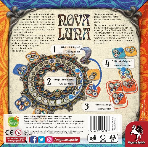 Το Nova Luna είναι ένα φιλικό προς την οικογένεια παιχνίδι που είναι γεμάτο στρατηγικές αποφάσεις ταυτόχρονα. Ένας κανόνας σόλο κάνει επίσης το παιχνίδι να παίζεται μόνο του.
