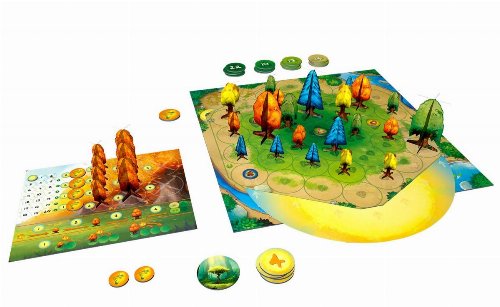 Ο ήλιος λάμπει έντονα στο θόλο του δάσους και τα δέντρα χρησιμοποιούν αυτή την υπέροχη ενέργεια για να μεγαλώσουν και να αναπτύξουν το όμορφο φύλλωμά τους. Σπείρετε τις καλλιέργειές σας με σύνεση και οι σκιές των δέντρων που μεγαλώνουν θα μπορούσαν να επιβραδύνουν τους αντιπάλους σας, αλλά μην ξεχνάτε ότι ο ήλιος περιστρέφεται γύρω από το δάσος. Καλώς ήρθατε στον κόσμο της Photosynthesis, το πράσινο επιτραπέζιο παιχνίδι στρατηγικής!